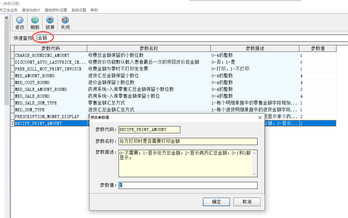 系统设置,参数设置,处方打印时是否需要打印金额